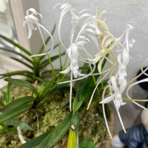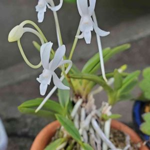 👶🏿うちの子👶🏿 🍀フウラン🍀 白い小花の可憐な蘭です❣️ 面白そうなこの子を園芸店で二鉢買って 我が家の家族になりました😊