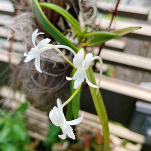 風蘭咲きました 植え替えてくれた花友さんに見せたら 「5年後、生きてたらまた植え替えてあげるね〜」 と言われました。 先の事はお互い分かりませんが、願わくば自分で出来る様になりたいです☺️ 風蘭の上品な香り漂う 夕方の水やりが楽しみになってます☺️
