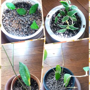 2024.0511(土) 今日は、花友のAQ さんと渋谷のgarageに行ってきました。 いろんな観葉植物があり しかもレアモノだったりおしゃれな鉢や板付けの子たちだったりたくさんいて 2人で一時間以上あーでもないこーでもないと浅はかな知識をひけらかし合い、笑い合いました😊 ホヤは板付けされた子たちが数種類、鉢植えの子がちらほらいました。 ホヤ・オボバータが良心的なお値段でいたのを私のホヤアンテナが見逃さなかった👍 お買い上げしてきました。(1枚目) オボバータの情報があまりないですね。まだ原産地も調べきれていません💦 深緑にスプラッシュの葉っぱが大きくて肉厚な子です。 2枚目は、AQ さんにいただいたアロカシアの小芋w 家に帰って早速小さいスリット鉢に入れ替えました。(3枚目) わくわくが増えたー😚 湿度を保って発芽を待ちます🫠 4枚目 根腐れホヤのレスキューをした ホヤ クローニアナ シルバー 花座が2つも付いていた✨ 慌てて寝かせていたのを割り箸で立たせました。 がんばれーがんばれー、戻ってこーい 5枚目 根腐れホヤのレスキュー その3 ホヤ オブスクラ もう、根っこがほぼついていませんでした💦 盆栽鉢のような幅広の鉢に、茎から寝かせて 気根が発達してくれることを期待します。