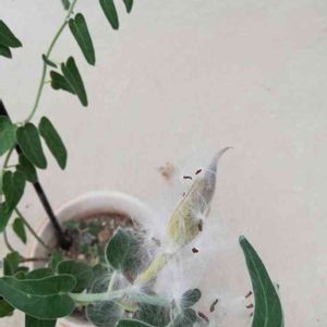 種さやが、はじけた❗ フワフワ綿毛の付いた種。