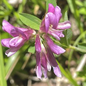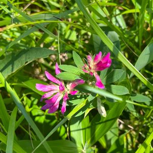 シャジクソウ 漢字では 車軸草 葉っぱの形状が名前の由来のようです。 (上手く撮れていないのですが😢) 花言葉は、『あどけなさ』 どことなく 蓮華草に似ていて、 健気な雰囲気です。