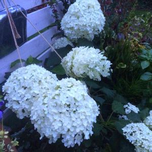 本日雨降りなり〰︎ε-(´∀`; ) 紫陽花アナベル頭でっかちで倒れそう〰︎(≧∇≦)💦 紐で補強〰︎٩(๑‾ ꇴ ‾๑)۶