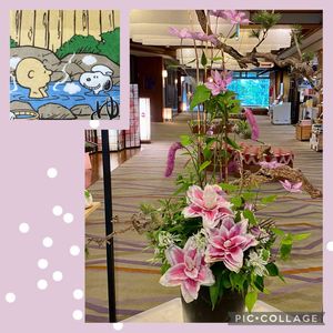 ①出雲の温泉街で出会えた 立派なウェルカムフラワー💖 美しい八重咲き百合・ 優しいピンクのテッセン ヒモケイトウ 立派な枝ぶりの松? 下の方の斑入りの葉、、 ユーホロビア?他、、 しばし見惚れました✨💖 ② ゴーヤを塩茹でして、 ツナを乗せた簡単サラダ まわりはお料理中のスヌーピー スーパーで見つけたスヌーピーの お醤油✨もちろんゲット ③銀座三越のピーナッツ75周年 知らずに涼むつもりで入ったら、 ものすごく盛況で、各階 SNOOPYが沢山😍 いただいた♥️カーネーションに 小さな蕾・・ 🏷️毎月2日はスヌーピーの日 🏷️金曜日の蕾たち 他 参加させてくださいね まだまだ暑い日が続きます。 体調に気をつけて、元気に お過ごしくださいね☀️