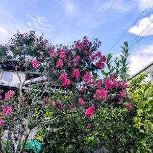 1️⃣晴れた空に百日紅の濃いピンクが映えます 4️⃣ゴージャスな八重咲きのユリ 香りはあまり感じませんでした