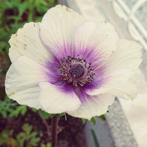 12月に球根を植えたアネモネバイカラーミックス(赤、紫)が咲きました! 赤は見当たらないけど、咲くかな?
