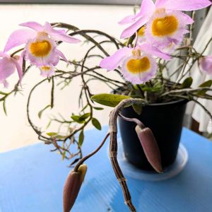 デンドロビウム…ロディゲシィ JAの抽選で当たった物です🎯 蘭と言う事はわかりましたが、花芽も何にも無くてヒョロ〜んとしてクッチャラクツチャラの苗だったので、何じゃコリャ〜? と思って2階の窓辺に置きっぱなしでした こんなに可愛い花が咲くなんて、急いで調べてpostしました🤭