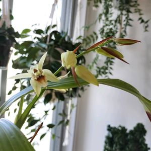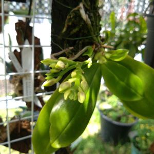 先日、初めてのらん展に伺いお迎えしました💛Coel.salvaneraniana この子にしたキメ手は、お菓子の香りだよ~とオススメされ ん?😳こ!これは!?例えるなら、高級洋菓子店で上質なホイップクリームがた〜っぷり乗ってる黄桃のショートケーキと、シナモンクッキー🍪の詰め合わせを開けた時のような・・🤤💕 これまで、特別蘭をリスペクトする事はなかったのですが、ホヤにハマってから性質の似た着生蘭の、とりわけ香りが良いお気に入りが欲しくなり、咲きそうな株で探してみました😺 午前中だけ香り、見た目も地味ですが、朝起きたら、テーブルの上にご褒美が有るかのように、クンクンするのが楽しみになるサルバちゃんで決まりです🍰✨