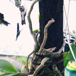 ファレノプシス ヤホーングリーンバッドマン 根っこが先っぽだけでしがみつくタイプ 花は咲かせられないけど 毎日根っこ見て楽しめて🙆