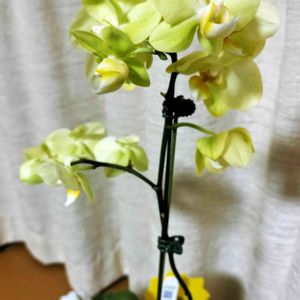 コメリにて2回我慢したけど3度目の正直で買ってしまいました。値引きこそなってなかったけど安かったし。色が可愛すぎたし。花付き良すぎたし。葉っぱの状態も良すぎたし。家帰ってオカンに見せたら珍しくへぇ可愛いじゃん言うてたし。ペレット植えにするために裸ん坊にしたら根っこも超良かったし。ミディ胡蝶蘭はたくさんいるけど黄色は居なかったのでOKとします。かわいい。