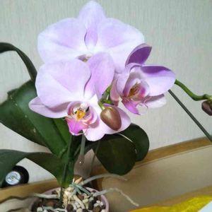 前回投稿した蘭が3輪咲きました😊すご〜く嬉しい😄 後、3輪のツボミ、頑張れ〜