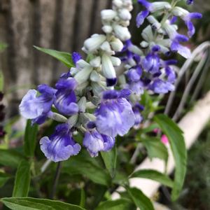 5月4日に プランターに植えた サルビア サリーファンです🪻 今は 上が白く 下のほうが紫色の状態です😊