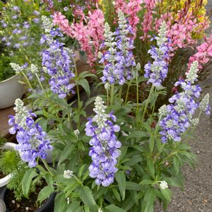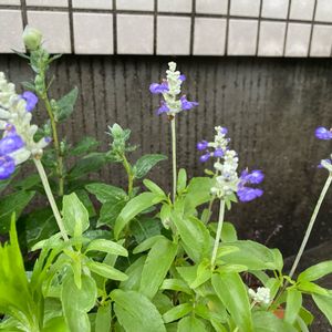 宿根草のサルビア、サリーファンスカイブルーです。 もっと大きくたくさん花を付けてほしいんですが、まだこんな感じです。 夏になってからが本番なのかなぁ? 成長が待ち遠しいお花のひとつです💙🤍
