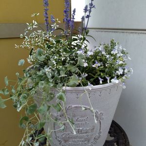 ネットで鉢を注文したら またサイズ勘違いしてデカいの注文 (2回目💧学習能力ゼロ) せっかくなので寄せ植えしました💙🩵🤍