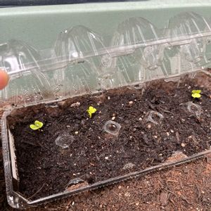 ラディッシュ約1週間で発芽。肌寒い1週間でしたが、土の上に置いて、卵パックの蓋を閉めて外に置いていたから、割と暖かかったようです🥰 根っこが伸びないうちに移植します💪