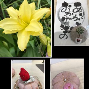 近くに韓国の輸入雑貨屋さんがあります。 そこの駐車場に黄色の綺麗な八重咲きのヘメロカリスが咲いていました。 オーナーさんが作ったカードや、針山がとっても可愛かったので許可をいただき撮らせてもらいました💕