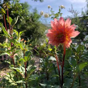 ダリア「優芽」 何年かは球根は植えっぱなし。 今年は周りのお花に負けずにと草丈高くなってます😆