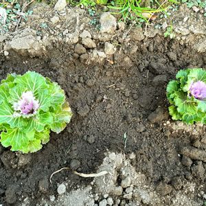 《今日のお花》 ①葉牡丹を初めて購入して植えてみました😊︎💕︎︎ ②ラベンダーが秋も咲いてます🍁 早めに切ったからかなぁ❓ ③うちのかぼちゃ、今年は小さいです😂 比較にスマートウォッチを⌚️