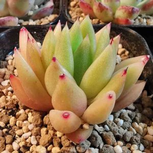 【エケベリア属 アガボイデス】 Echeveria agavoides 和名 東雲(仙鳳・曙 ) 原種 本日のメンテナンスは【アガボイデス】 色々なヴァリエーションがあるので、 そっから先が知りたいのですが、 ネームタグはアガボイデスのみ🏷 晩夏になってから アガボイデス系の苗が、 次々と調子を崩しました 来年は育て方を要改善(ノ_・、) 画像のこちらは唯一崩れなかった子