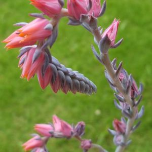 こんばんゎ🌛*゚ 白い粉のような葉ふっくらとした細長く伸びた葉の折鶴 存在感のある釣鐘型の お花が咲きました 茎は20cmぐらい伸びてるので上からパシリ