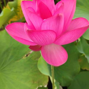おはようございます。☀️☀️ 少し朝晩は気温が下がりましたかね。☺️連休前会社で咲いてました、蓮です。🤩🤩緑にピンクが映えますね。👍💮 今日も一日頑張りましょう。💪💪