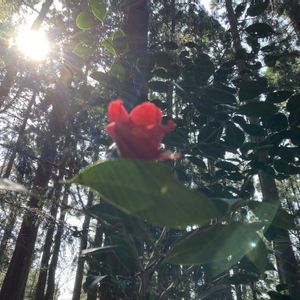 おはようございます☺️ 今日も心豊かな一日になりますように🩷 杉林に紅一点✨ ヤブツバキ