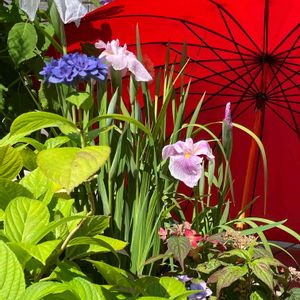 おはようございます。 昨日 大粒の雨の中 花しょうぶの蕾から 綺麗な濃い桃色が、チラリ。 今朝、雨も上がり 青空の下 ペットボトルで育てている 「花菖蒲」が3種類咲きました。 近くに 無農薬で米作りをされている 農家さん🧑🌾がみえます。 その一画で 花菖蒲を80種類も育てられています。 その中から お気に入りの「花菖蒲」を頂き 育てています。 今年も 5種類とも咲きそうです。 投稿 20年6月にしてあります。 よかったら覗いてね。 昨日使用した傘干しています。 「尾鷲傘🌂」 三重県尾鷲は 日本有数の雨の多い地域です。 傘の骨が16本あります。 この傘 10年以上使ってます。 もちろん 傘🌂結構好きなので 他にも沢山あるけど。 💙雨の季節💙 その日の気分で 傘🌂楽しみましょう😘 尾鷲在住ではありません。 良い休日をお過ごしくださいね。