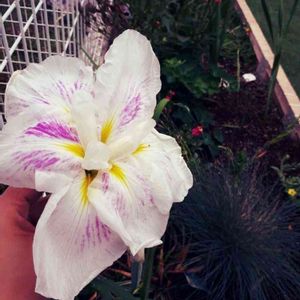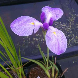 ハナショウブ 昨年の仕事に使ってから持ち帰ってきて✨金魚とメダカの居る舟に入れたら今年も咲いてくれました🎵 まだ蕾が2個3個着いてます😁