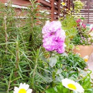 ストックとノースポールの後ろのローズマリー🌿 暴れてたのでざっくりカット✂️😌✨