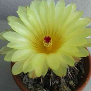 ノトカクタスの獅子王丸です。サボテンを始めた最初の頃にホームセンターから連れて来て、赤ちゃんの握りこぶしくらいだったのが、ムチムチスクスクと育ち続けて今は自分のげんこつを越えるくらいに大きく育ちました。本来は真っ黄色なのですが、赤が少し混ざっていて気に入っています(*˘︶˘*)