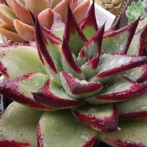 現在のエケベリア エボニーブラックライン 太陽と寒さに当てていじめるといい色出てくるね😁