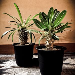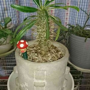 周りに有る他のパキポのカイガラムシ被害の影響でコイツも一度葉が枯れたんですけど、退治後は葉がフサフサになって復活😊