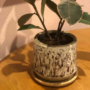 ダイニングテーブルのフィカス・ルビー🌿 受け皿やっと落ち着きました お値段以上ニトリ〜♬
