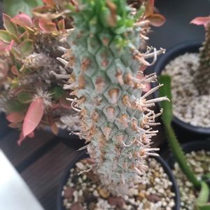 ユーフォルビア・スコエンランディー (闘牛閣)🌱 スリムなタイプ✨ 肌が白いのは個体差なのかな🤔 昨年、原澤園芸さんでお譲りして頂いた株です。 花を咲かせてくれるか楽しみに観察していましたが、今のところその様子は見られません💦