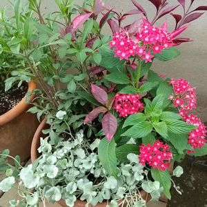 秋の寄せ植えできました🌼😆 ビンクのベンタス アルテルナンテラ コタキナバル ディコンドラ シルバーフォールズ これからチョコレートコスモスが咲いてきます