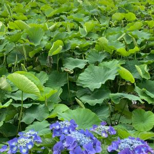 不忍の池の💜紫陽花と大きくなった☘️蓮の葉 No.35