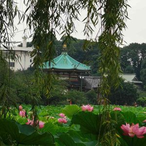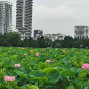 不忍池の🍀 輝く水と💦 優しい蓮の花💝