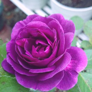 おはようございます(*^^*) バラ ミネルバが咲きました💜💜💜 少し赤みな紫で写ってますが、実物は濃紫のバラなんです🎶