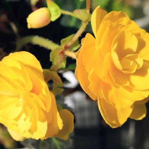 『球根ベコニア・ノンストップ』 📷玄関ポーチ🌿にて☺ ベコニアもそろそろ終わりの時期ですが、大輪の鮮やかなレモンイエロー🍋の花に魅せられて来年用にお迎えしました♡ദ്ദി(៸៸›ᴗ‹៸៸ )🍊♪