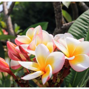 『今年初見のプルメリア』 📷富山県中央植物園🌿にて☺ (7月27日) 咲き始めのフレッシュなプルメリアの花を今年もいつもの植物園で見れました👍🎶 (˶ᵔᗜᵔ˶)ナンゴクキブン、サイコー♪🌴