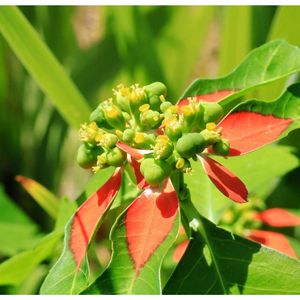 『色付くサマーポインセチア他❤❤❤』 📷富山市八尾町花壇にて☺(7月30日) ①②③鮮烈な赤に染まるサマーポインセチア(*'▽'*) ④お花の中央が真っ赤なペチュニア ⑤あのアンテナ📡のようなモミジアオイも元気に咲いていました( ˶'ᵕ'˶)و