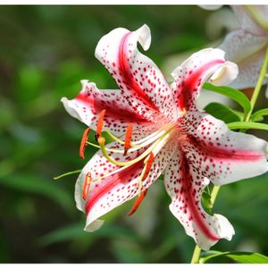 『ベニスジヤマユリ』 📷富山県中央植物園🌿にて☺(7月11日) ヤマユリの突然変異で生まれる希少種の「紅筋ヤマユリ」です👀 いつか野山で自生している個体を見てみたいと思っていますが、これからだと志賀高原🌿あたりが狙い目かも(,,ò᎑ó,,)و !