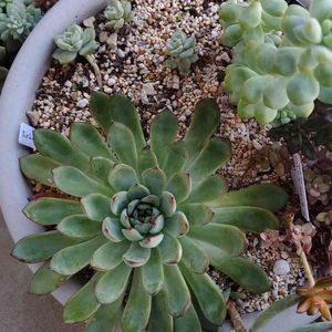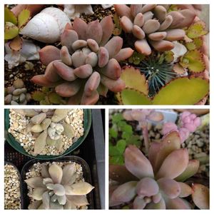 多肉を始めるきっかけの お名前わからない多肉 はじめは秀麗と 思ってました 右下が 秋麗 秋麗は一回り小さい おおきい秋麗も 見てますが 名無しのゴンベイは もっと大きくなるんです☹️ 上と左は同じ種類 左は葉挿し2年以上経っているものです オパリナかなー❓️ と思ったりしているのですが 最近 コーナンでにたものも見付けたので いろいろ調べてみます 秋麗は優秀 チビちゃんも可愛い