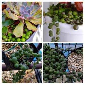 毎年枯らしてしまう グリーンネックレス 今年はなんとかまだ 維持しています🤭 でもー もう少し増えても良いんじゃないの❓️ 下段右は 左の鉢から右に自然に活着するようにしている 下段左は 鉢に ケーキの箱のリボンの様に針金を掛け 鉢を空中に吊り 風通し良く工夫したものです 工夫の結果は まあまあかも? 今 生存しているだけで 満足しないとなぁ 上の写真 ふとみたら 寄せ植えの中のグリネは 何も考えなくても 育ってた 不思議だ😩