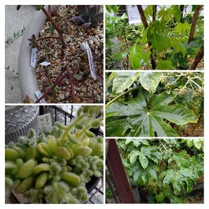 いいね を下さった○○様に 見ていただきたくて 投稿しま~す もうすぐ花が咲くと もう 一週間前からま思ってますが お天気のせいかなかなか 咲きません🤔 右上は 昨年取った種で育ってる小苗 右下は 寄せ植えにしている桜吹雪 同じ仲間の 茶傘が 下に写りました 粒々に白い毛っ毛 可愛い(*≧з≦)