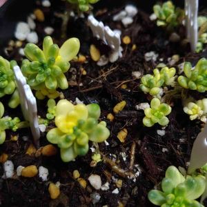 ↖️ 昨日わたくしの手元に 来てくれた イチゴダイフク〰️〰️〰️ぅ 可愛い🎉 ↙️ わたくしの花壇で双頭になってた片方をチョンパ かなり干して🤭これ 土に乗せただけ〰️〰️〰️〰️ ↗️ 出来立てほやほや オレンジピ〰️ル ➡️ 春を感じるセダム〰️ぅ ↘️ 100円~メチャお値打ち〰️ 🎉