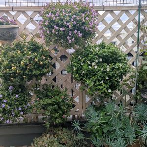𓍯PW スーパートレニア ラムレーズン𓍯 昨年の冬越しした子が涼しくなって花数増えて来ましたꕤ*。゚ 今年はハンギングにしてずっと北側に吊るしていたので成長が遅かった?かも😕 水切れを何回もさせてシナシナになっても復活してくれる強い子です💪🏻✨ 陽射しが届かなくなった頃から東側のフェンスに移動しました𖦥𖢇𖧡𖠿𖥧𖥣