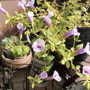 スーパートレニアカタリーナブルーリバー めちゃくちゃ優秀なお花💜 雨にも暑さにも強くて次々咲いてくれる。挿し芽もそのままダイレクトに土に挿してもついちゃう‼︎ 農園で見事に咲いてるのを見て、こんな風に咲かせてみたいと購入したら同じようになりました〜✨ 名前にも納得‼︎