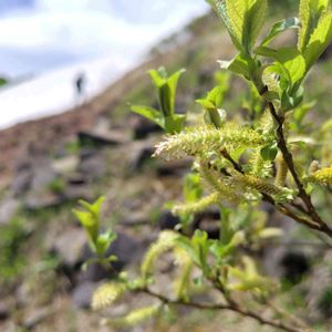 ショウジョウバカマは花後でしたが、出会えました🥰💕🎶 そしてミネヤナギ(ミヤマヤナギ)の果穂は初めまして🙇‍♀️の出会いでした🥰💕🎶 ①② ショウジョウバカマ メランチウム科ショウジョウバカマ属の多年草。 北海道から九州までの、やや湿った場所に生える。垂直分布が広く、人里近くの田んぼの畦道から高山帯の高層湿原まで生えている。 花序は花茎の先端に横向きに形成される。花の色は生育場所によって、淡紅色、紫色、白色と変化に富んでいる。 花期は低山では3~4月であるが、高山では雪渓が溶けたあとの6~7月になる。 なお、花被は花が終わった後もそのまま残り、色あせはするものの、咲いたときの姿を残しているので、夏に緑の花が咲いている、といった姿となる。 ③④ ミネヤナギ(ミヤマヤナギ) ヤナギ科 ヤナギ属 本州中部から北海道に分布、亜高山から高山帯に生え、高山帯砂礫地では地を這う様に、亜高山帯では2m以上になり、環境によりその大きさを変える落葉低木。 葉は丸っぽい楕円で、裏は粉白色。 雌雄異株で、葉が展開して花が咲き、径1cm長さ5-6cm程度の黄色い花を付ける。 種子になると綿毛が出て辺りを舞うのを見る事が有る。 この状態はまだ綿毛が溢れ出していないのでしょうか🤔 綿毛見たかった〜🥹✨🫧🎶