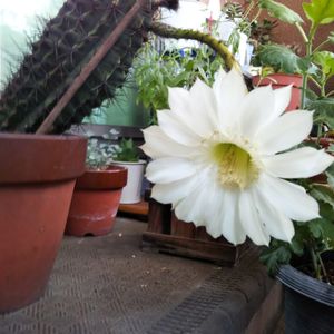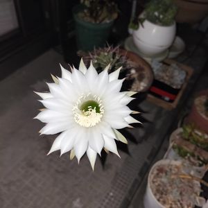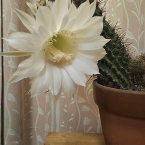昨日夜咲きました。 昼前なのにまだ咲いてます。 3年前に年代物の長盛丸を頂き、 家へ来て初めて咲きました🌼