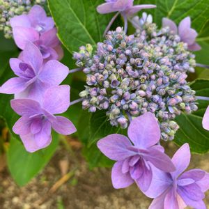 あじさい 城ヶ崎 装飾花が大きめで一つ一つが可愛いあじさいです♡ 昨年は青みの紫色でしたが、今年はピンクが強く出ていて、毎年咲くまで花色が分からないところも魅力ですね〜 15年以上この場所にいる、文字通りの古株です。元気に咲いてくれてありがとう!